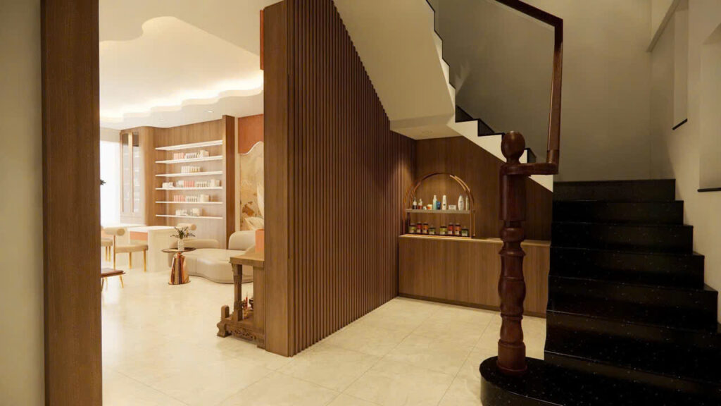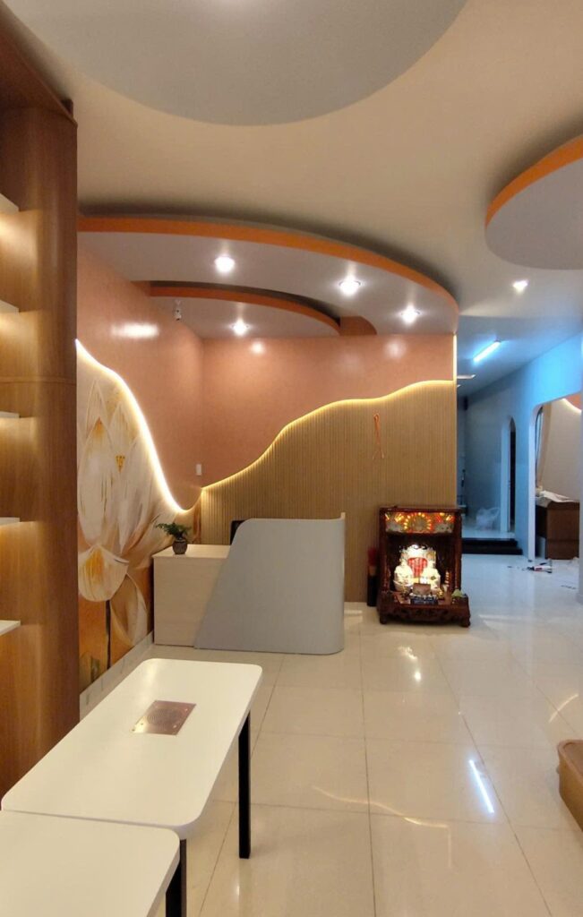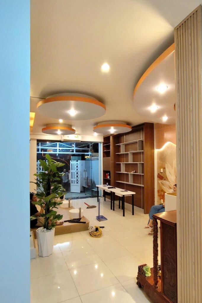 Các hạng mục trần, vách và hệ thống chiếu sáng được đội ngũ OIKIOS trau chuốt, tỉ mỉ hoàn thiện theo đúng thiết kế, đảm bảo công năng và độ bền theo thời gian.